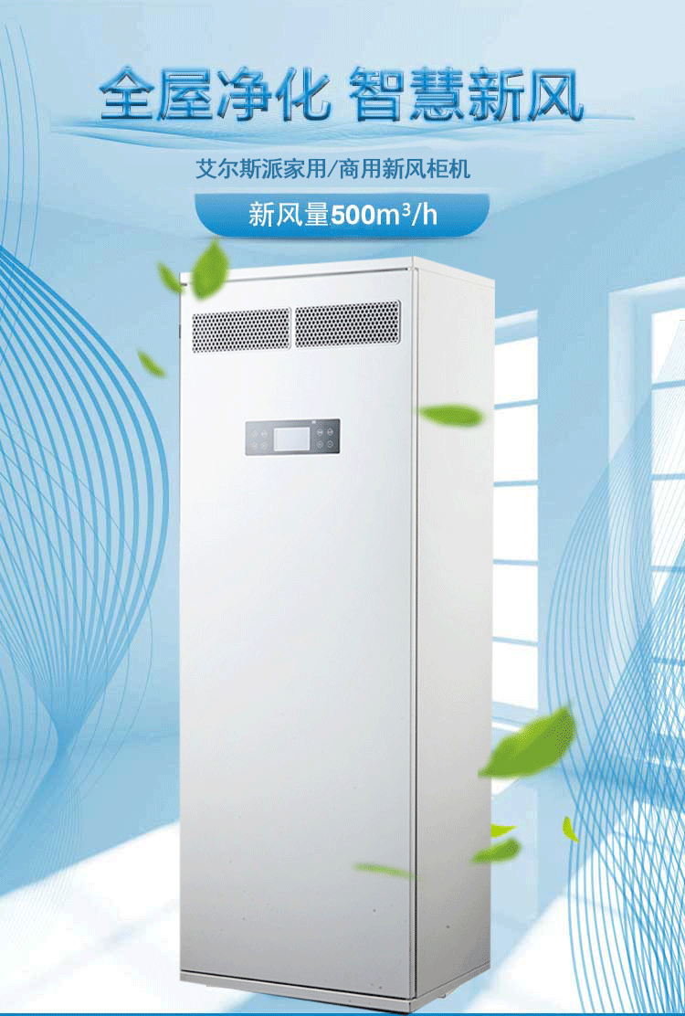 2、新風量:500m3/h,尺寸:1620*600*440mm,功率160W;