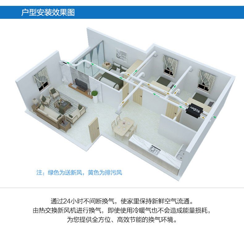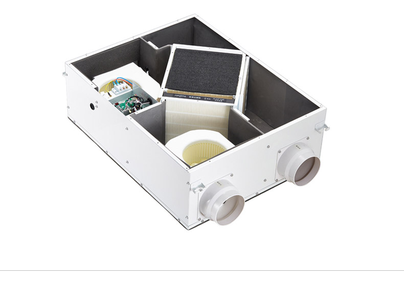 高能效比:采用水平進排風,具非常高的能效比,可回收70%以上能量 高效過濾:采用歐洲標準H13級過濾,多重過濾;PM2.5過濾99%以上 雙向流新風機:訂機采用雙核動力設計,動力強,體積小;采用直流無刷電機,低噪音,低能耗